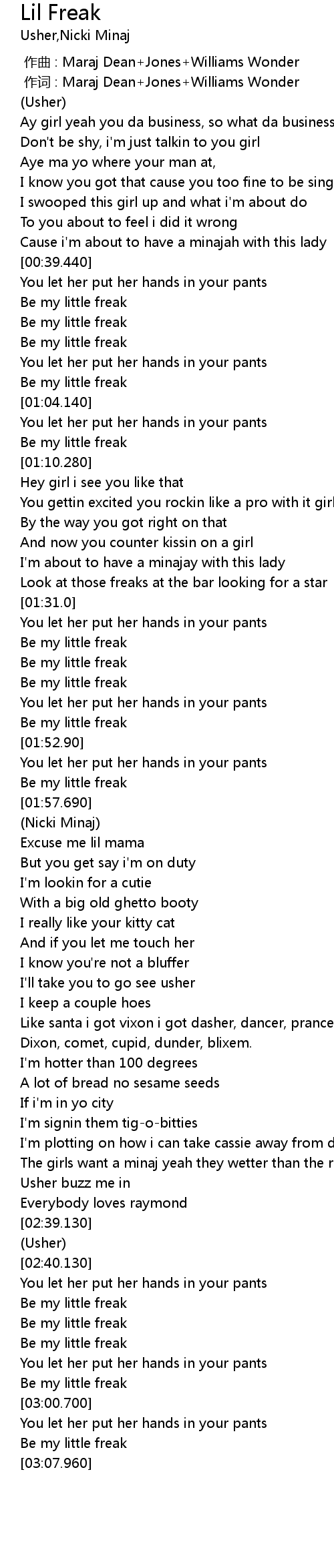| [00:35.920] | Cause i' m about to have a minajah with this lady |