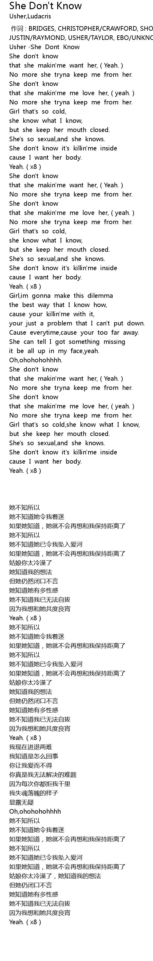| [00:04.20] | Usher She Dont Know |