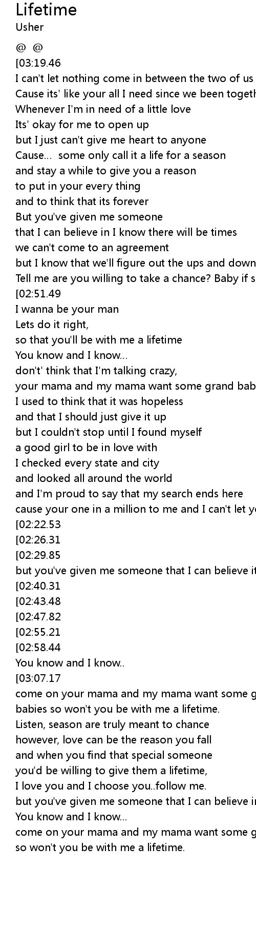 | [04:22.45][02:58.44] | Lets do it right, so that you'll be with me a lifetime |