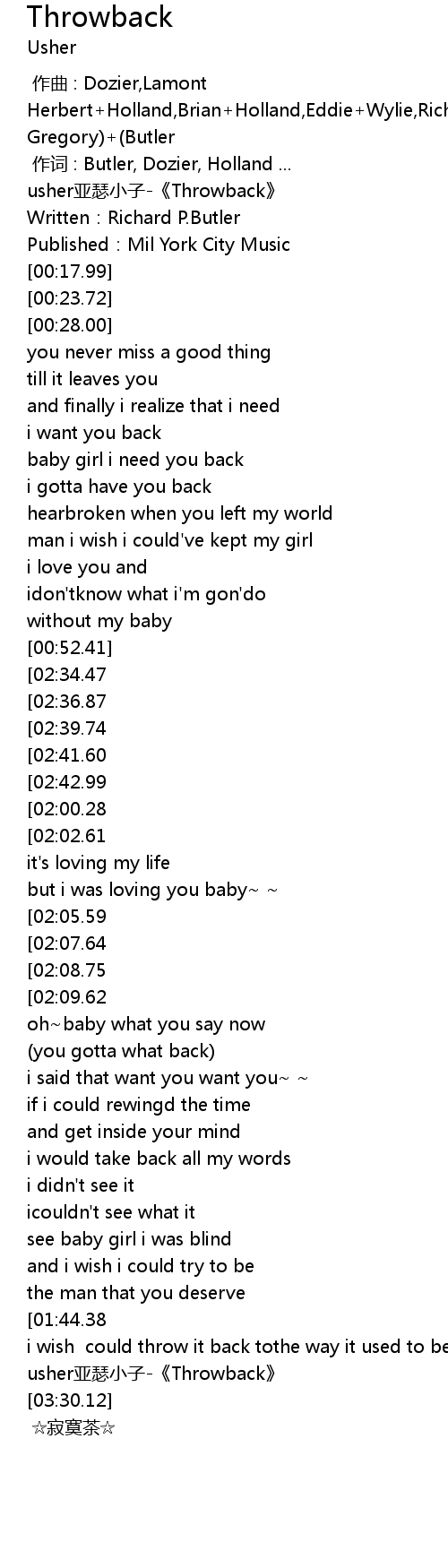 | [00:00.00] | usher亚瑟小子-《Throwback》 |