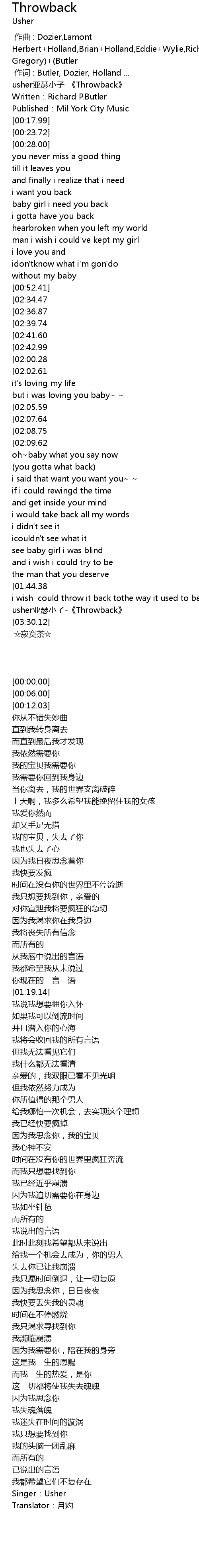 | [00:00.00] | usher亚瑟小子-《Throwback》 |