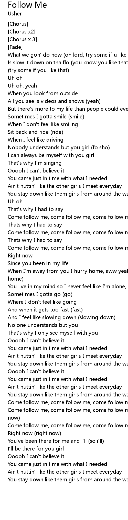 | [01:05.02] | Come follow me, come follow me, come follow me uh oh |