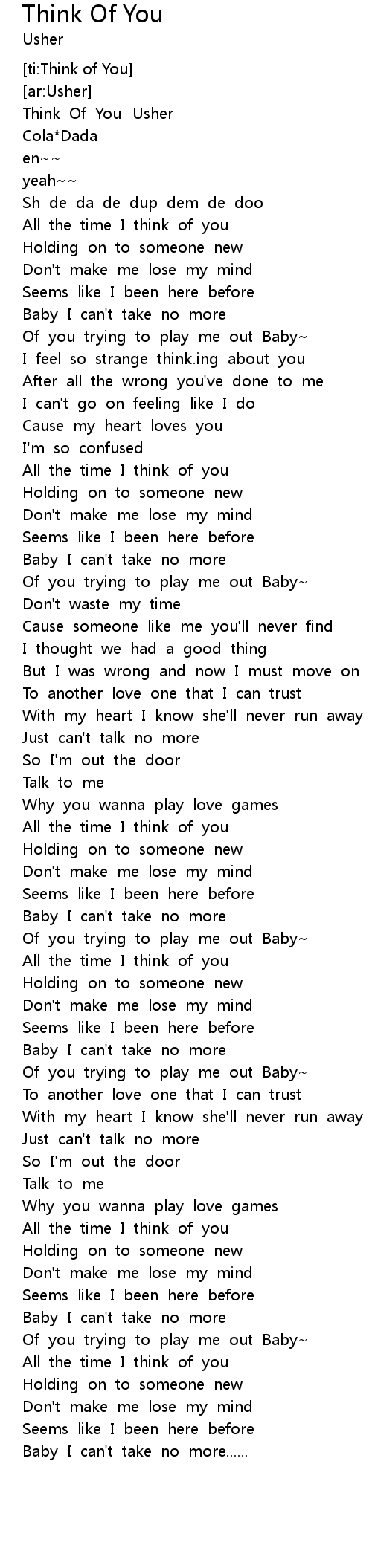 | [00:39.251] | Of you trying to play me out Baby~ |