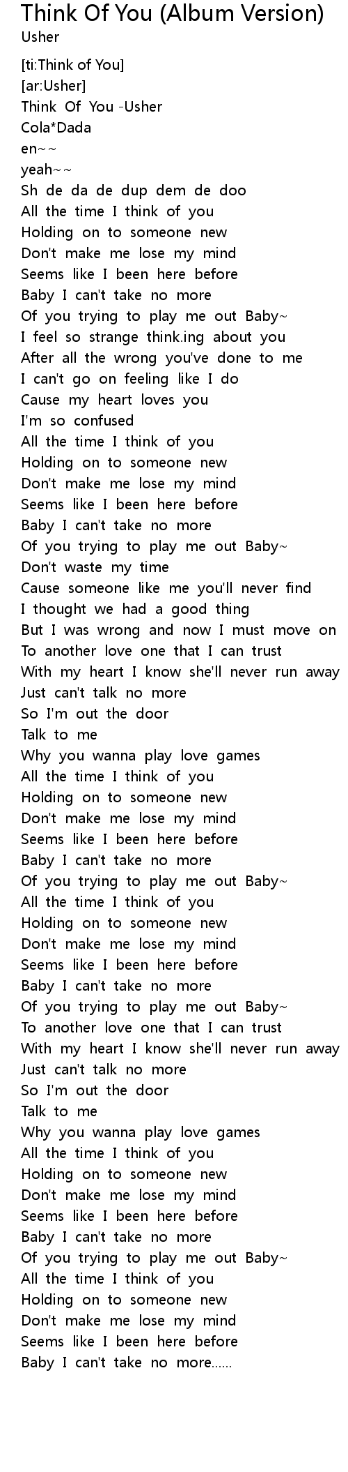 | [00:39.251] | Of you trying to play me out Baby~ |