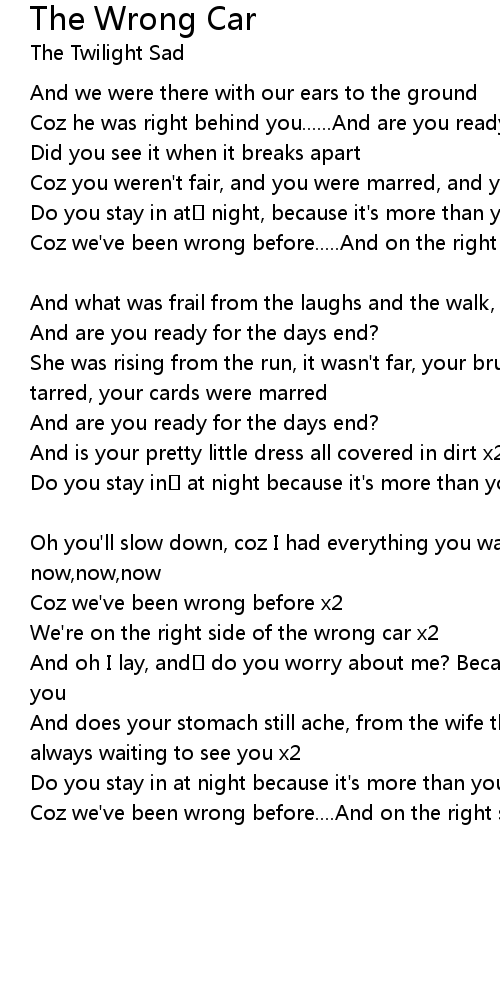 | Coz we've been wrong before....And on the right side of the wrong car (repeat) |