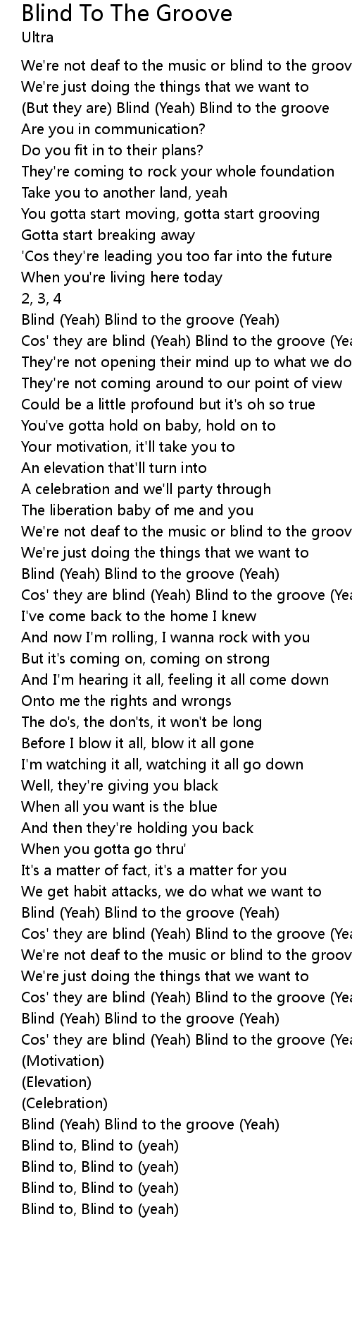 | Blind (Yeah) Blind to the groove (Yeah) | |