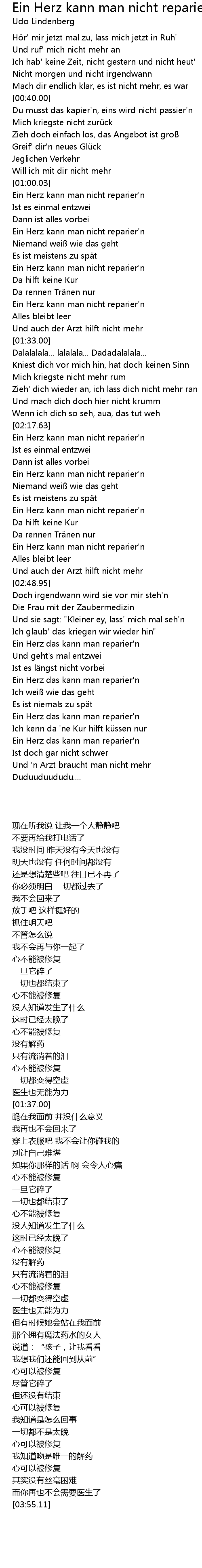 | [03:34.91] | Ein Herz das kann man reparier' n |