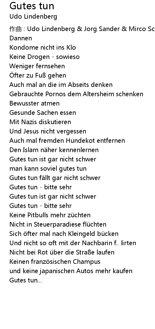 | 作曲 : Udo Lindenberg & Jorg Sander & Mirco Schaffer & Jens Karstens & Funny Dannen | |