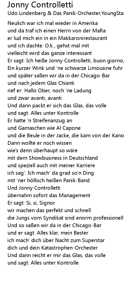 | Er sagt: Ich hei e Jonny Controlletti, buon giorno, Signor | |