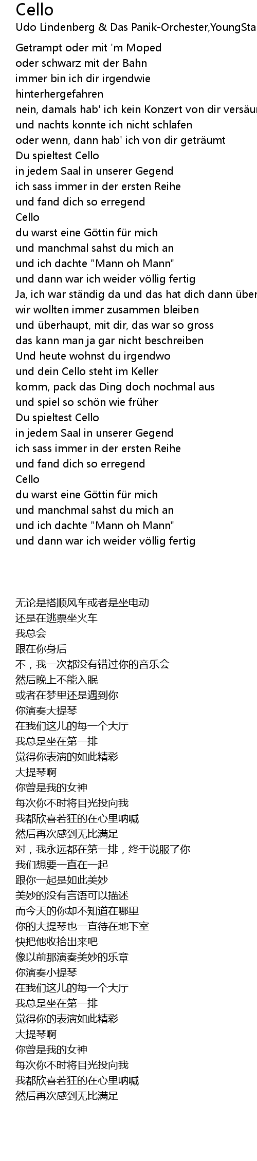 | [00:25.75] | nein, damals hab' ich kein Konzert von dir versäumt |