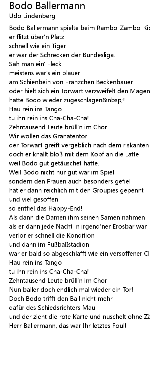 | Bodo Ballermann spielte beim Rambo-Zambo-Kickerverein | |
