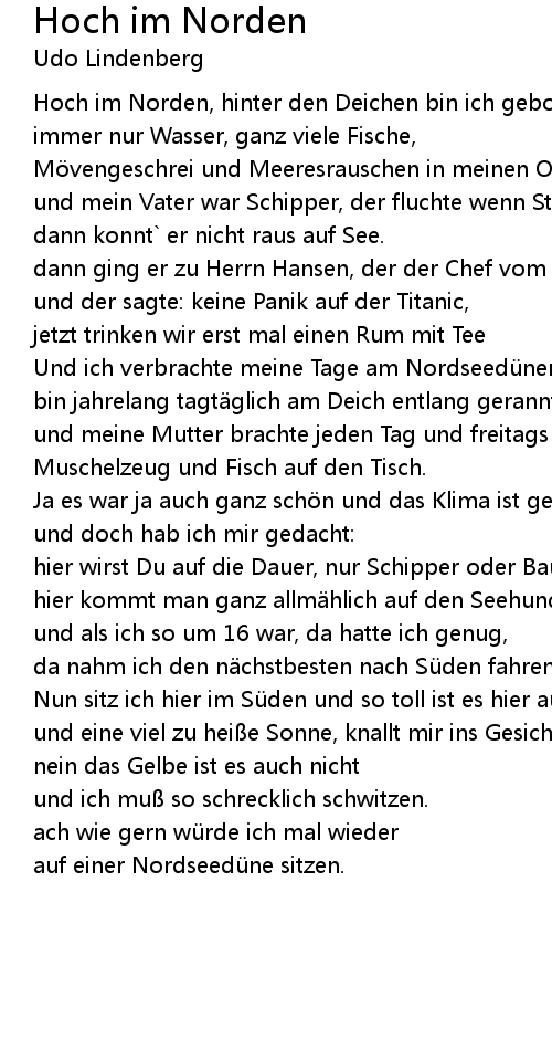 | Hoch im Norden, hinter den Deichen bin ich geboren. | |