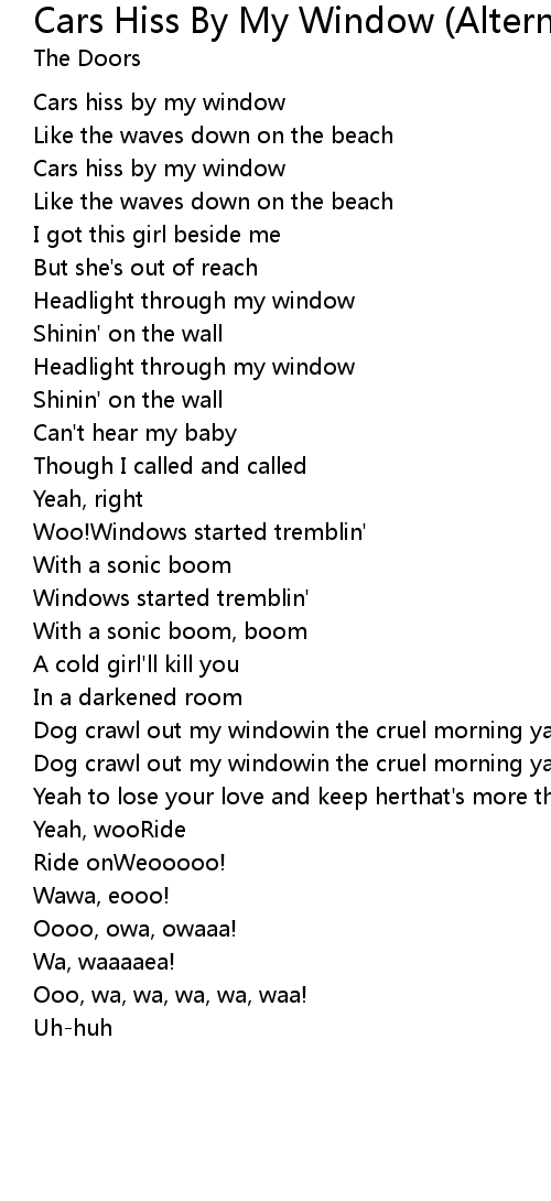 Cars hiss by my window |