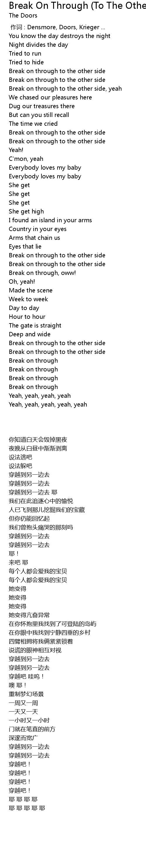 | [00:00.00] | 作词 : Densmore, Doors, Krieger ... |