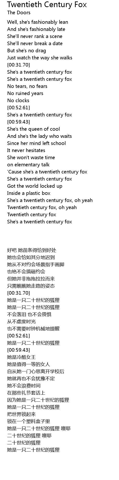| [01:49.22] | 'Cause she's a twentieth century fox |