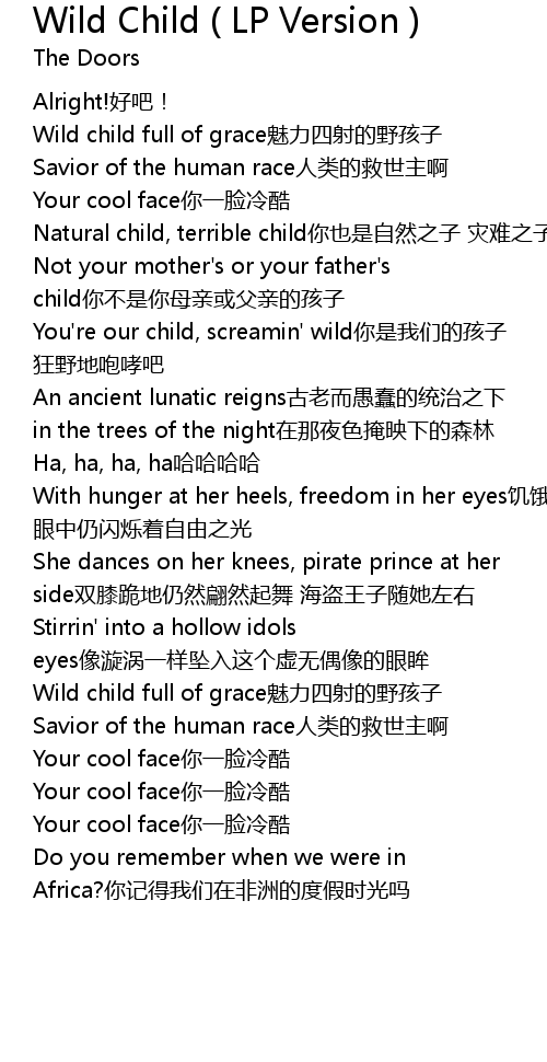 | [02:05.43] | Wild child full of grace mei li si she di ye hai zi |