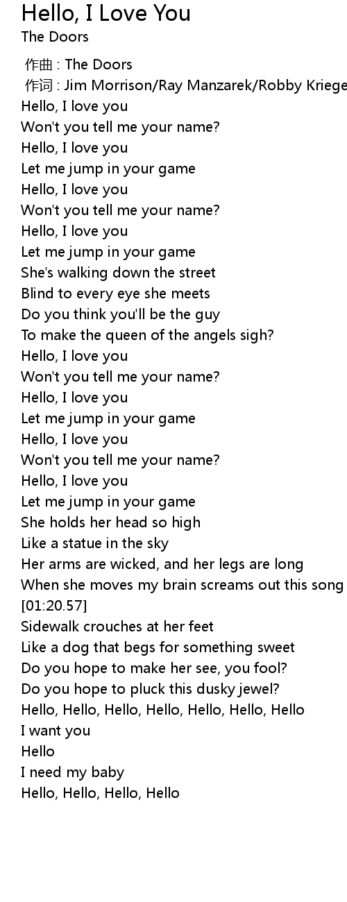 | [00:57.74] | Hello, I love you |