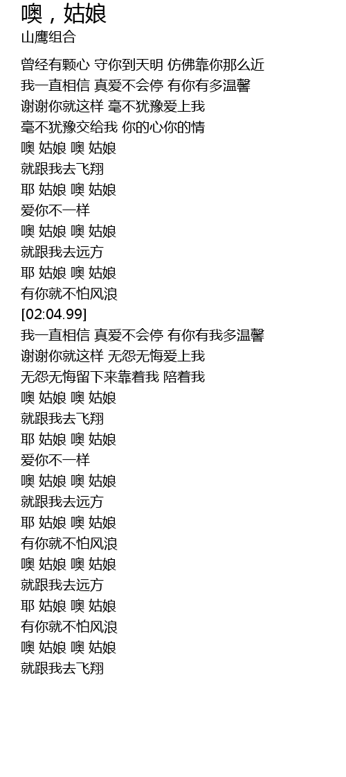 | [03:58.95] | 耶 姑娘 噢 姑娘 |