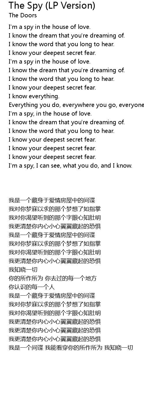I'm a spy, in the house of love. |