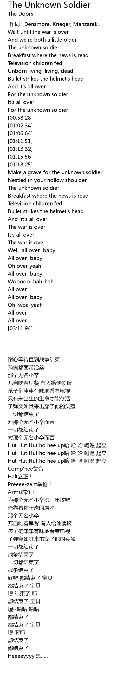 | [01:51.13] | The unknown soldier |