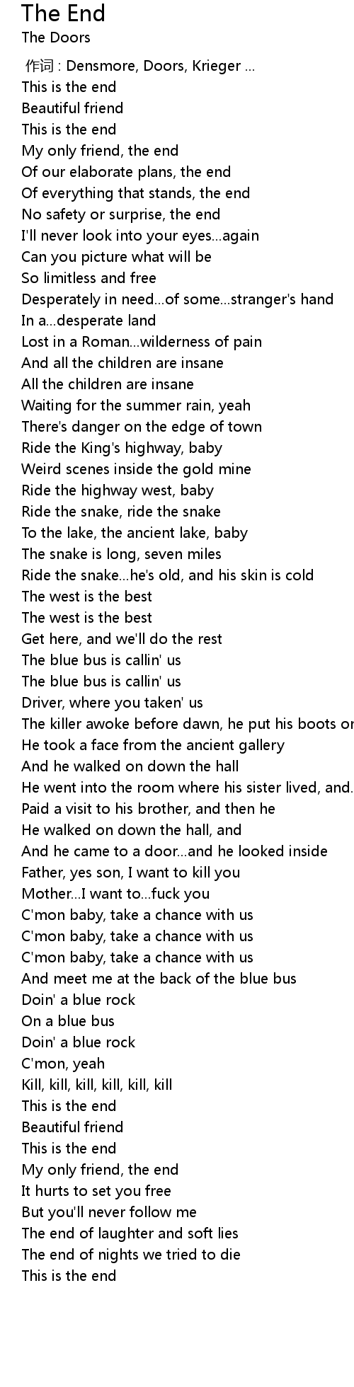 | [00:00.00] | 作词 : Densmore, Doors, Krieger ... |
