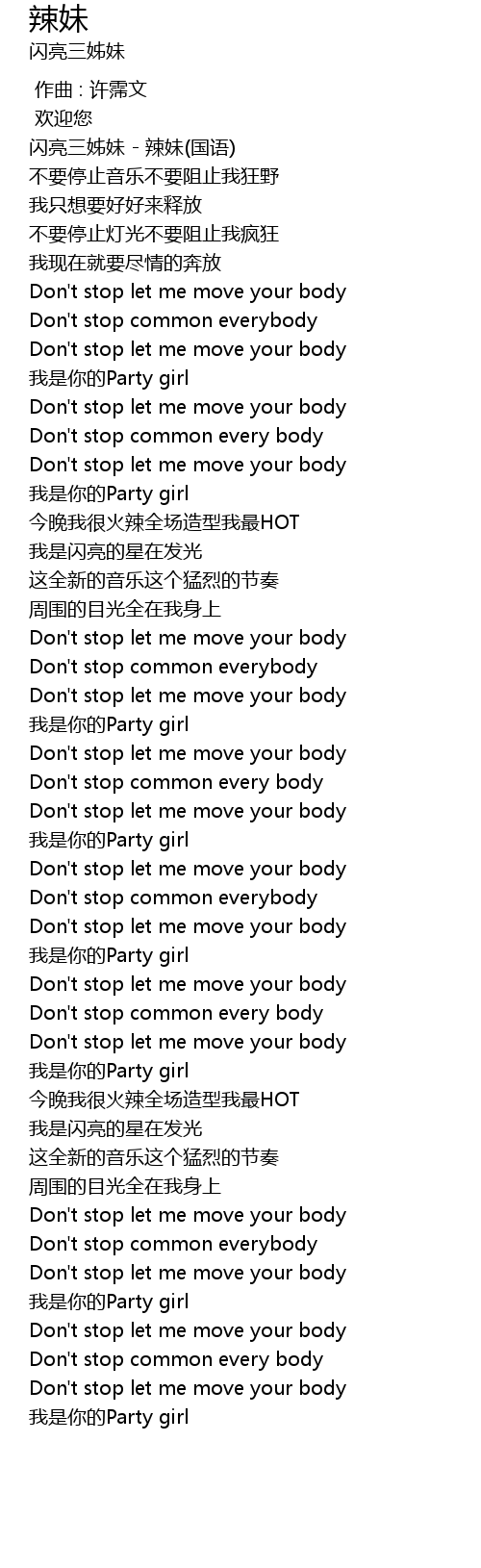 | [02:22.57] | Don' t stop let me move your body |