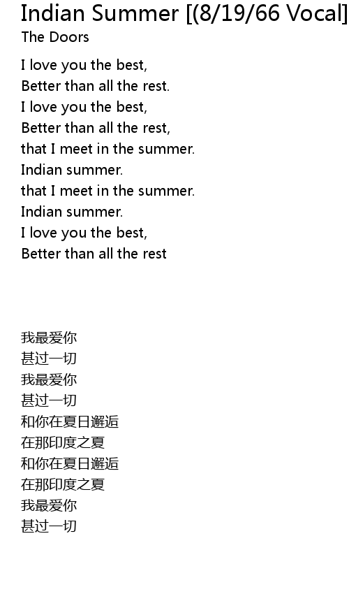 | Song | Indian Summer [(8/19/66 Vocal] |