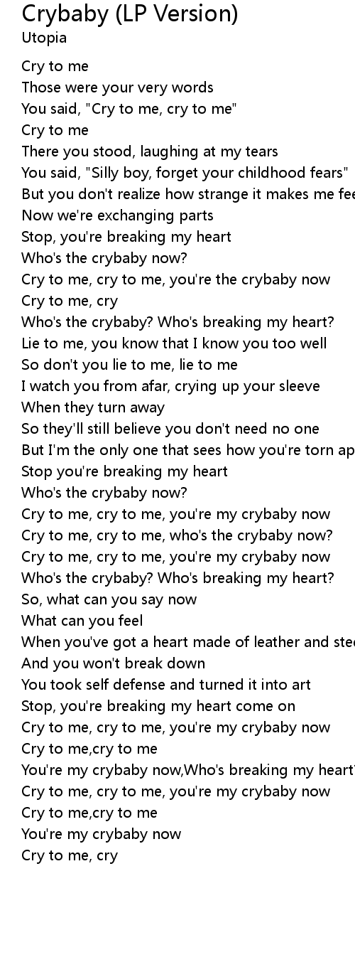 | [03:22.74] | Cry to me, cry to me, you're my crybaby now |