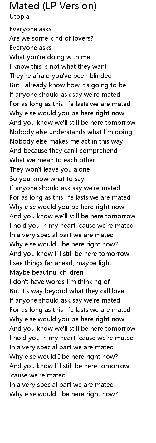 | [02:54.82] | If anyone should ask say we're mated |
