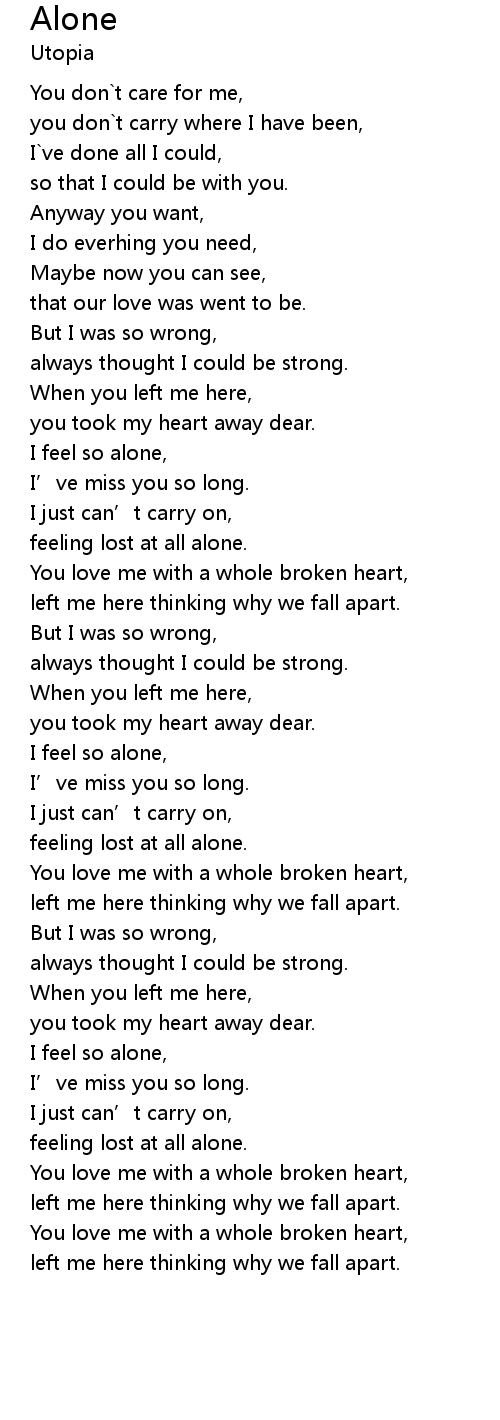 | [01:48.68] | I feel so alone, |
