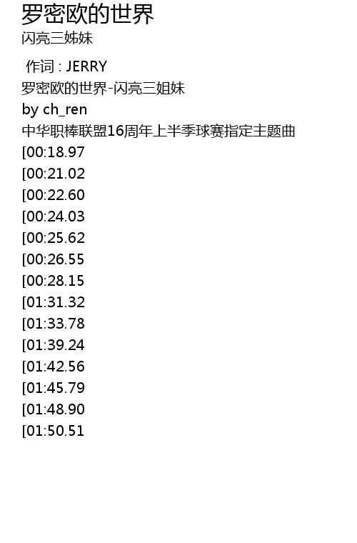 | [02:35.64][01:48.90][00:49.39] | 罗密欧的世界 |