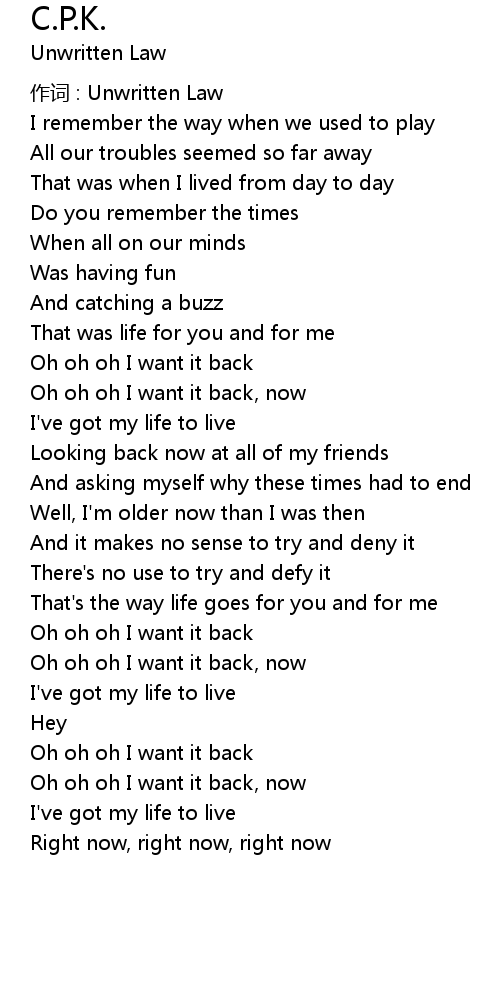 | 作词 : Unwritten Law | |