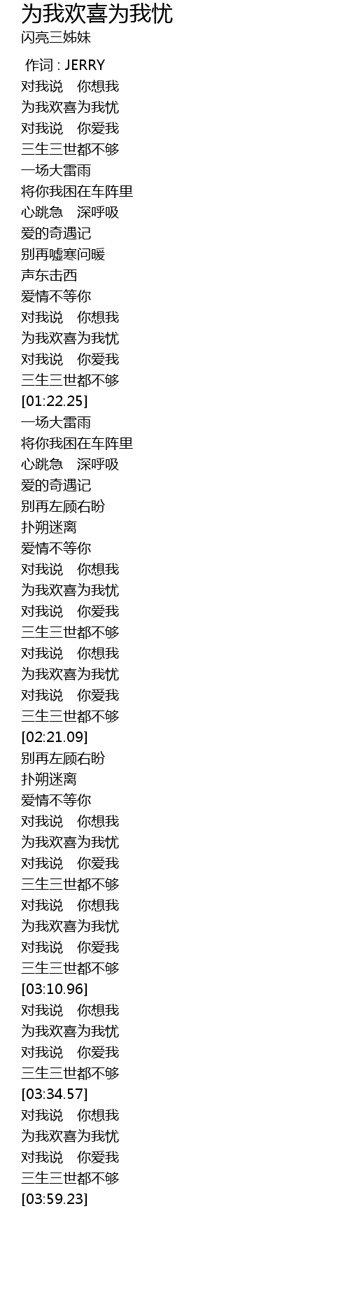 | [03:21.17] | wèi wǒ huān xǐ wèi wǒ yōu |