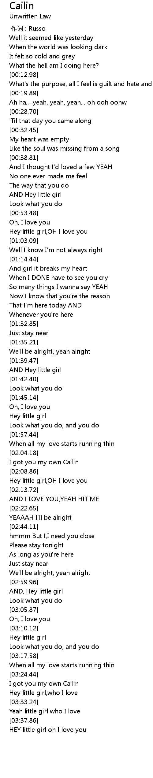 | [03:39.17] | HEY little girl oh I love you |
