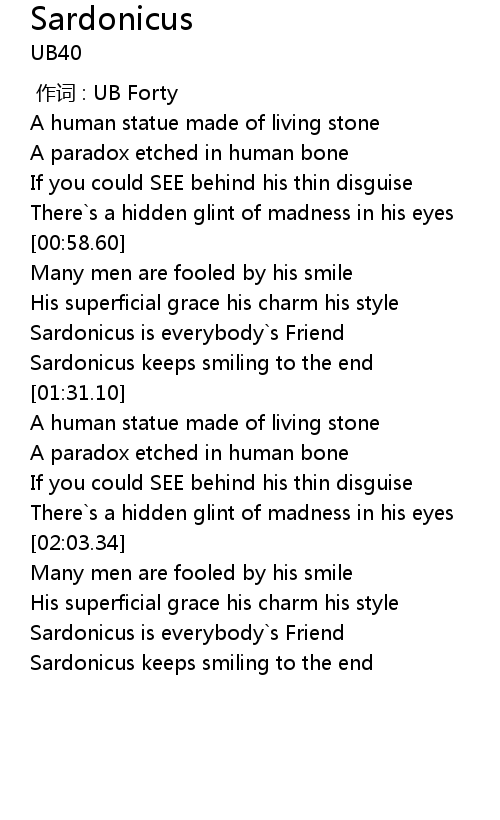 | [01:22.33] | Sardonicus is everybody s Friend |