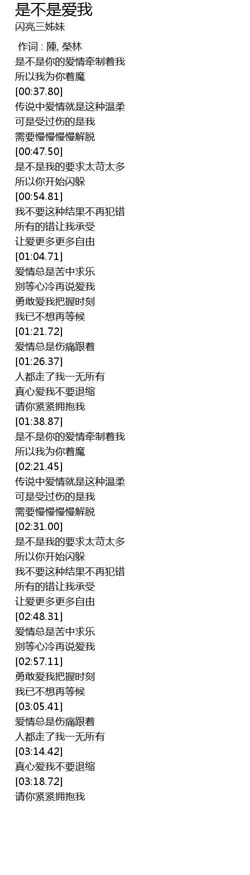 | [00:30.50] | 是不是你的爱情牵制着我 |