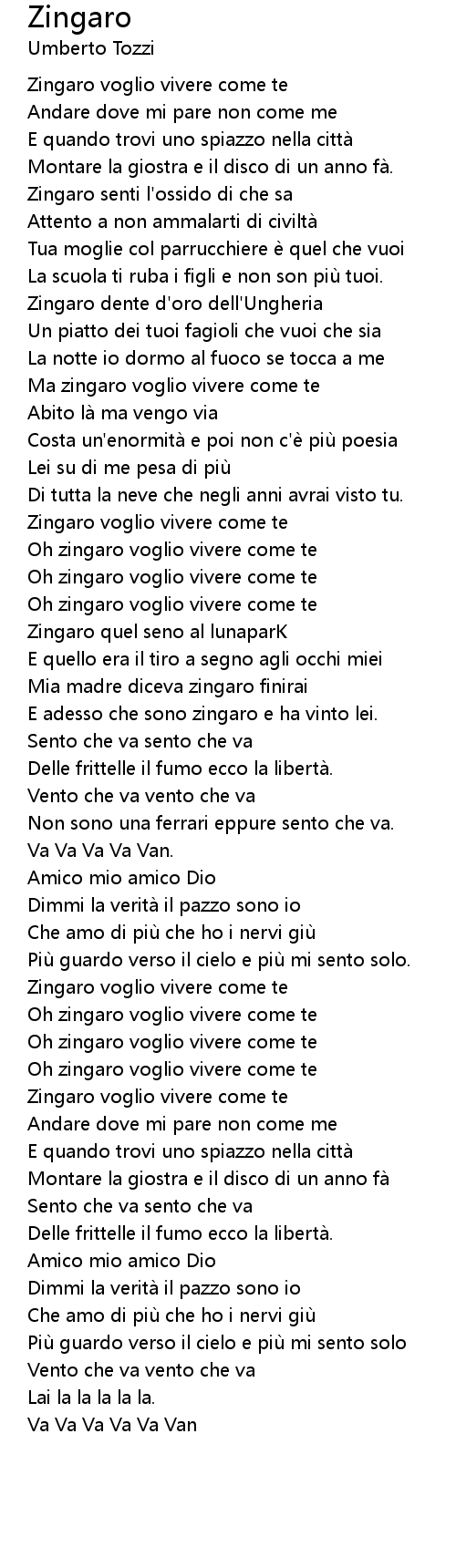 | Oh zingaro voglio vivere come te | |