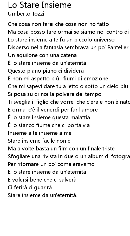 | Song | Lo Stare Insieme |