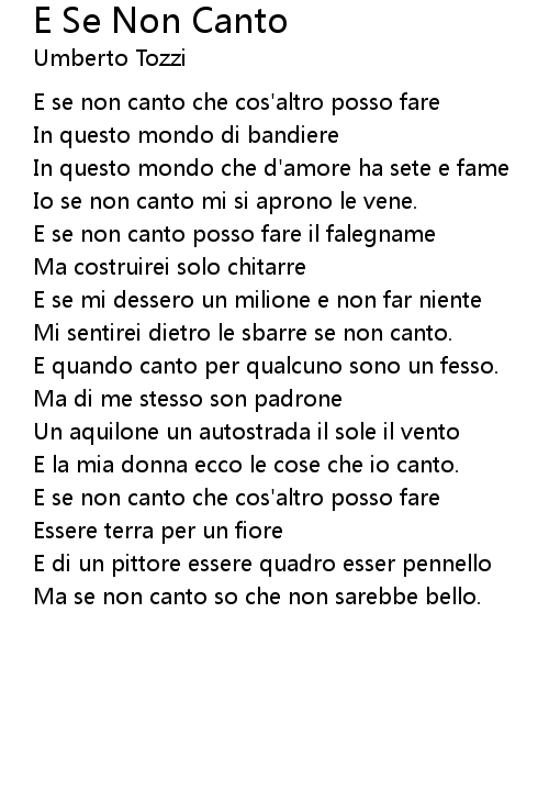 Ma se non canto so che non sarebbe bello. |