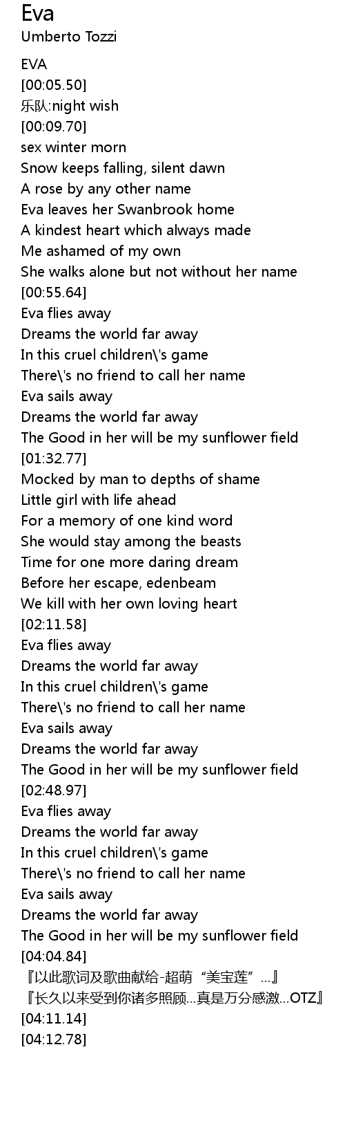 | [00:57.33] | Eva flies away |