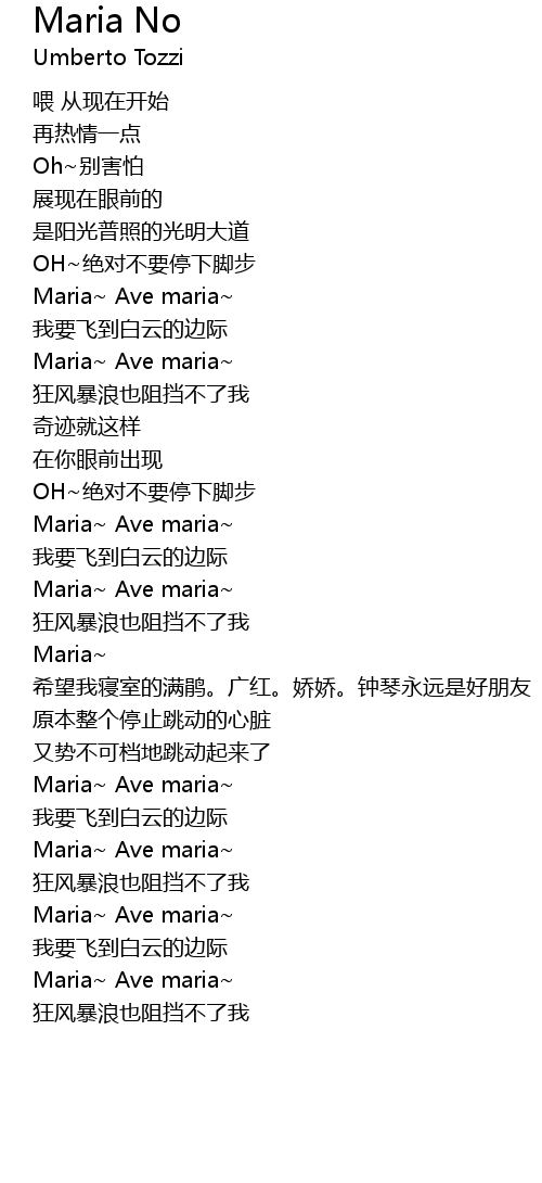 | Song | Maria No |
