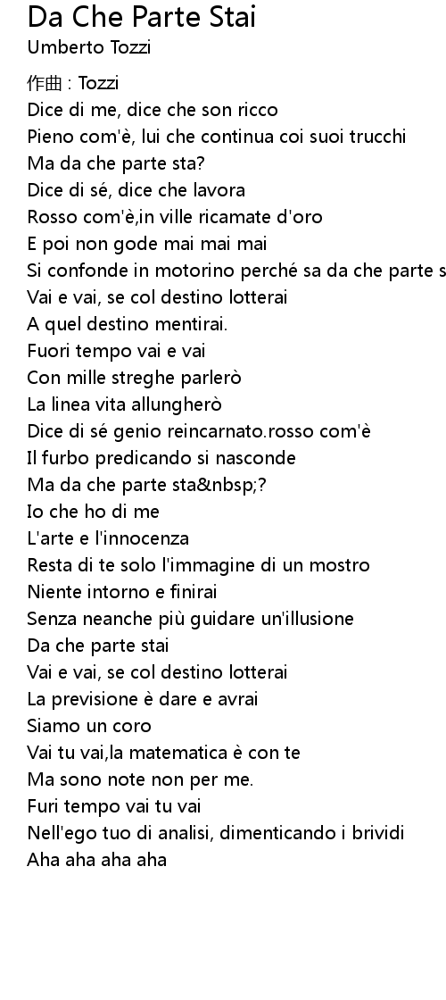 | Song | Da Che Parte Stai |