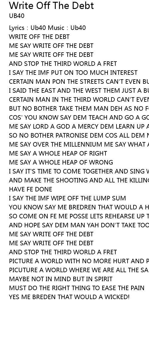 | ME SAY WRITE OFF THE DEBT (Chorus) | |