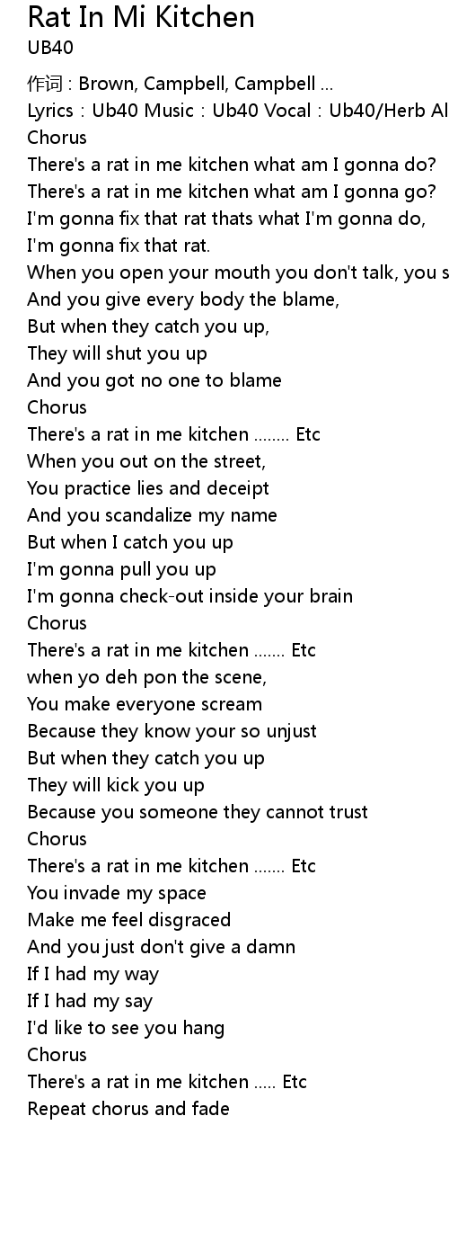 | Song | Rat In Mi Kitchen |