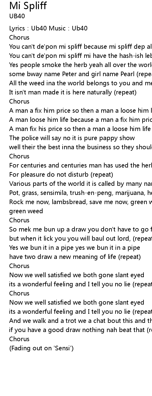 | You can' t de' pon mi spliff mi have the hashish leb and sensi | |