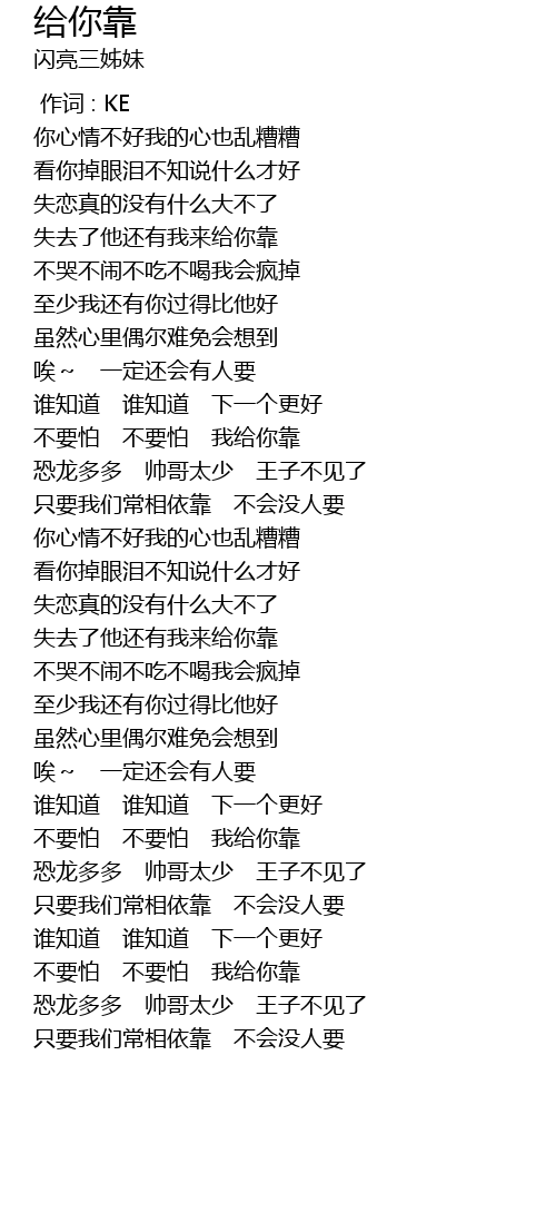 | [00:59.91] | 不要怕 不要怕 我给你靠 |