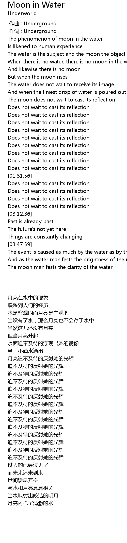 | [00:49.99] | The moon does not wait to cast its reflection |