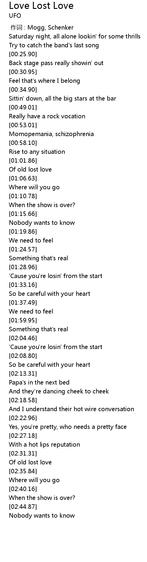 | [00:00.00] | 作词 : Mogg, Schenker |