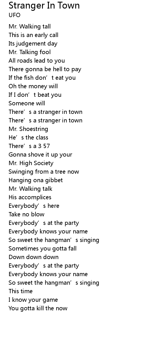| Song | Stranger In Town |