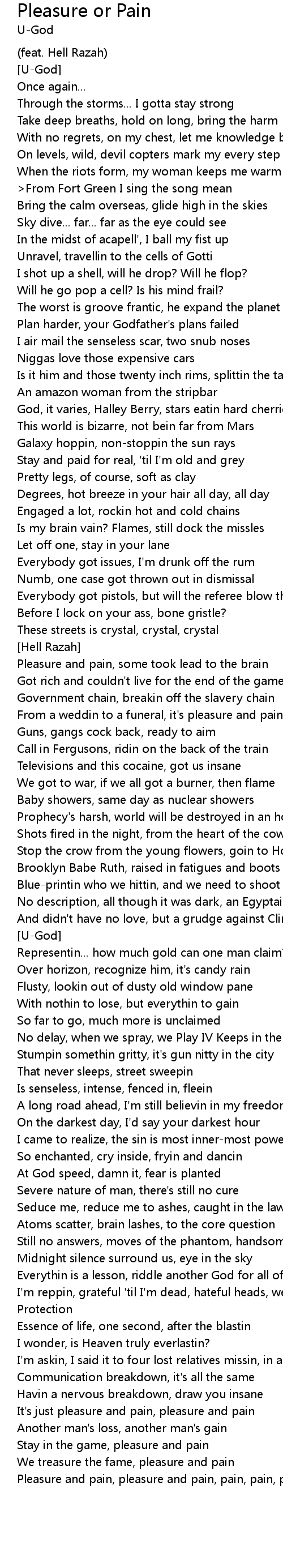 Pleasure and pain, pleasure and pain, pain, pain, pain |